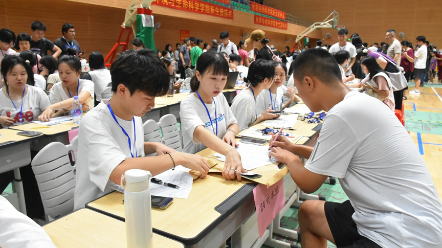 报道现场秩序井然,来自五湖四海的计信学子陆续到校,志愿者们热情地接待新生,为新生办理入学手续,解答各种疑问。