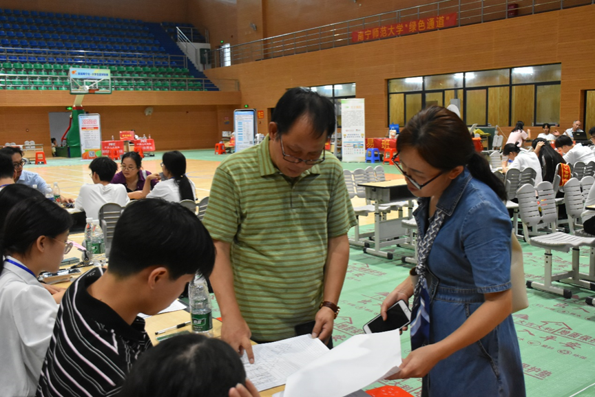学院党委书记于朝文、学院党委副书记韦柳温到学院迎新接待点进行慰问和指导工作,听取新生接待情况汇报,与新生进行亲切交谈。
