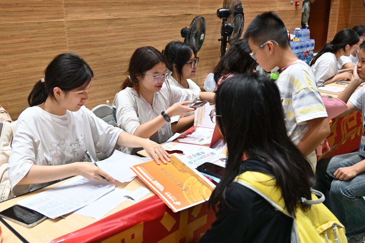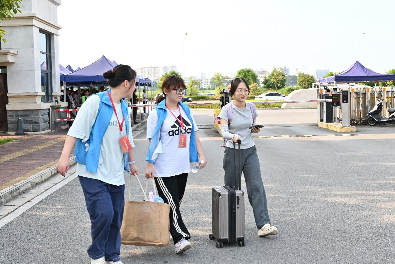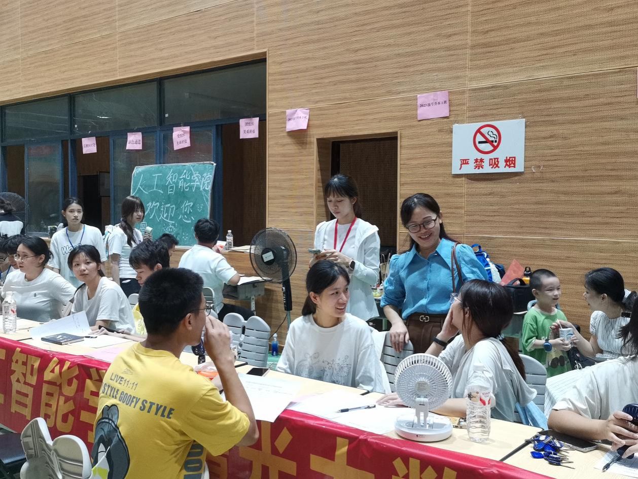 为高效有序地迎接新生,学院提前制定好迎新方案,招募学生志愿者,详细规划新生报到的各项流程和事务。设置一站式服务点,为新生办理报到手续、答疑解惑;布置了打卡板吸引新生家长合影留念。迎新现场,学生志愿者身着蓝色马甲、热情引导,并为新生搬运行李、介绍学校路线,场面热烈而温馨。