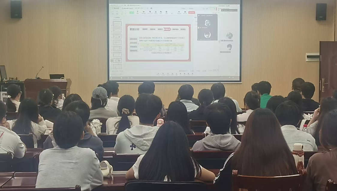 在授课环节,实习生秦慧婷以“数据处理的一般过程”为主题展开教学。她运用案例教学法,系统且深入地讲解了课程核心知识。与此同时,2023级教育技术学专业学生在地信楼A301教室通过线上直播的方式观摩课堂教学。这种一线教学实况的呈现,为即将于下学期开展实习的他们提供了极为宝贵的学习范例。