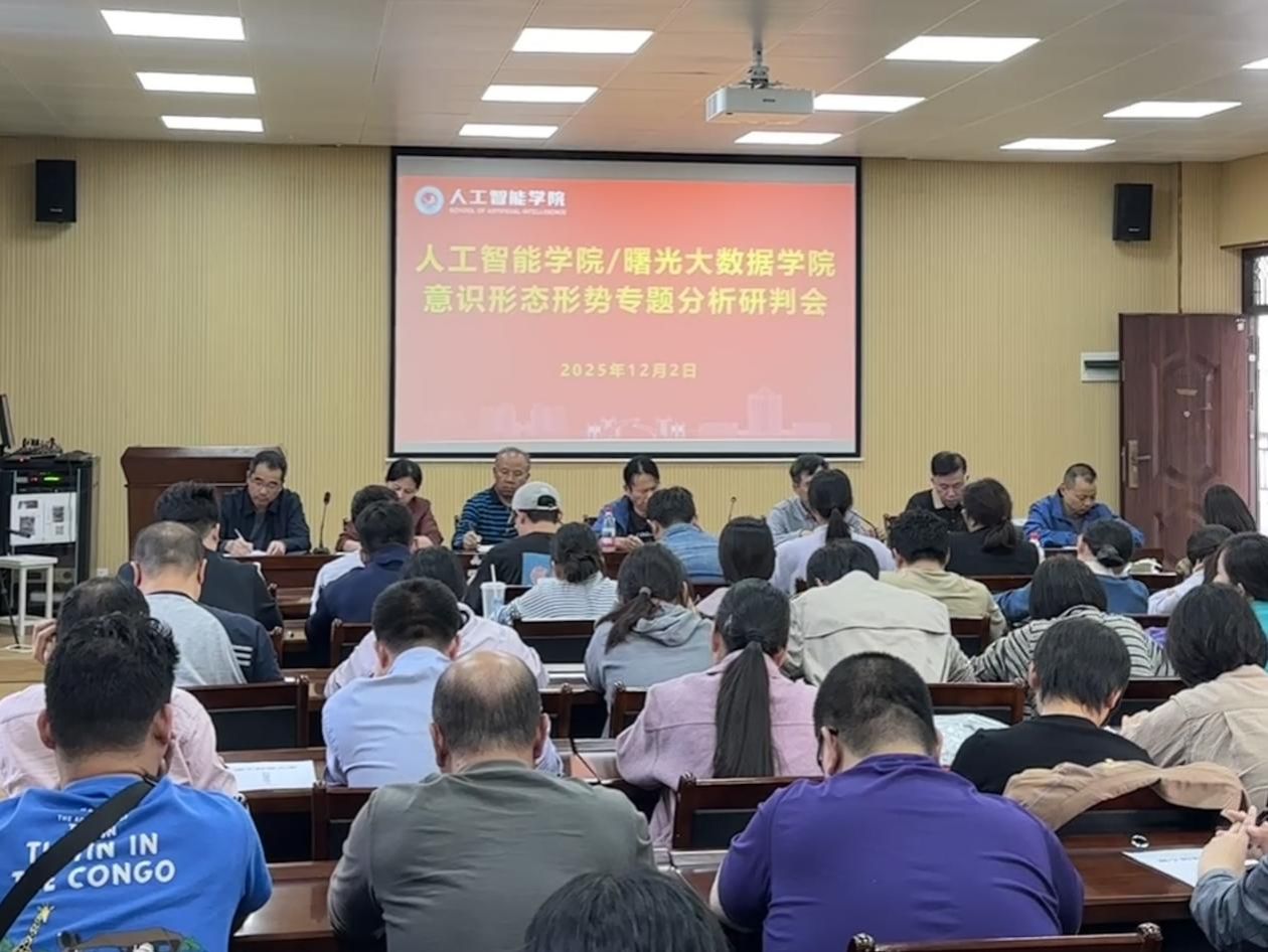 在意识形态形势专题分析研判中,黄江涛传达了学校第一次党代会精神及“1395”总体发展战略,要求全体教师以人工智能赋能学科专业升级与教学创新。他强调,必须深入学习贯彻党的二十届四中全会精神,严格落实课程思政要求,坚守师德师风与廉洁从教底线,切实履行好在意识形态和网络安全等方面的责任。