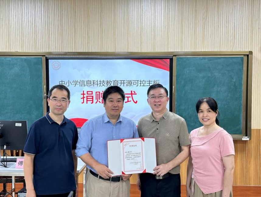 专题讲座开始前,傅骞教授还向学院捐赠了50套中小学信息科技教育开源可控设备,支持学院教育高质量发展。