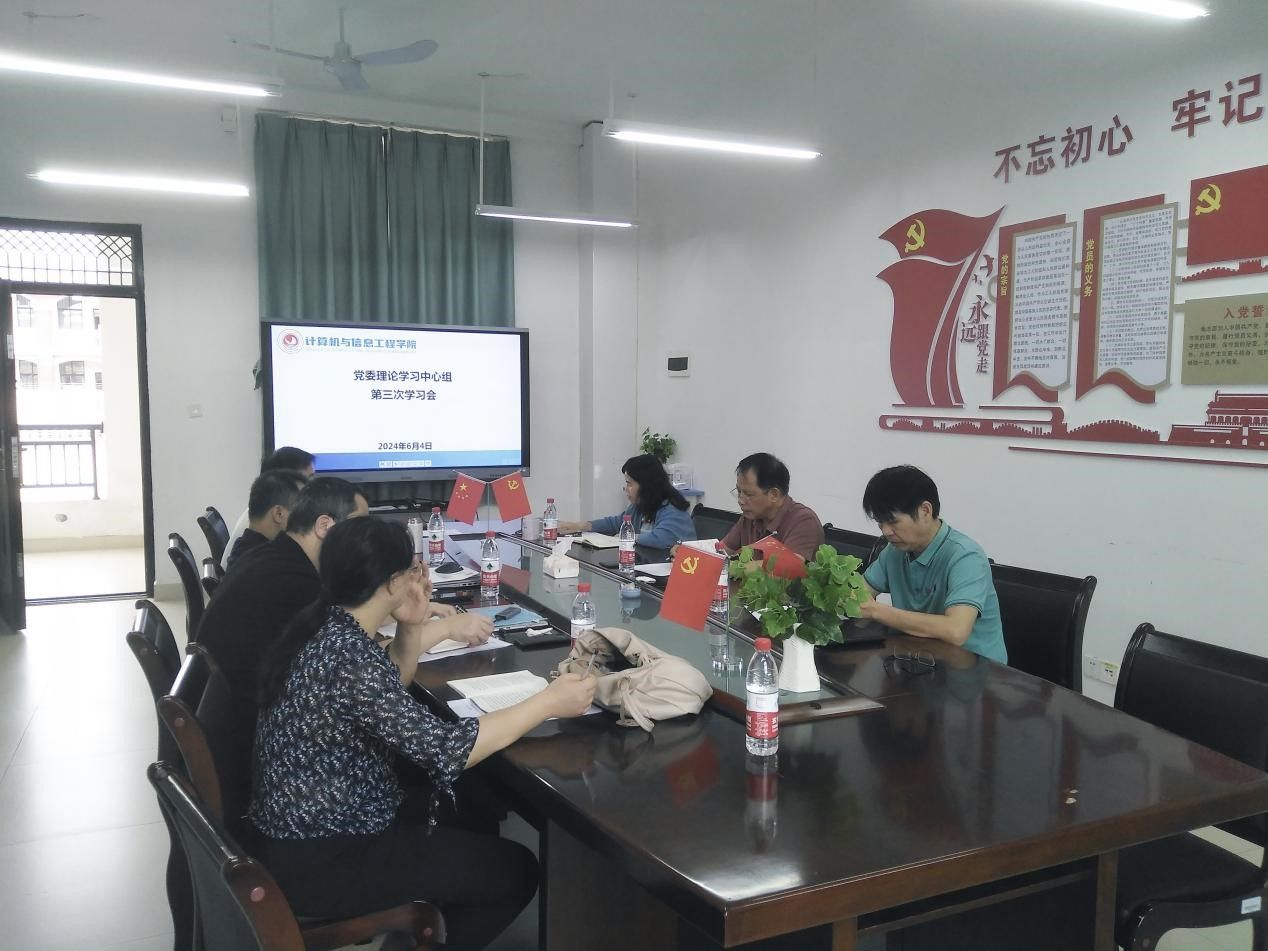 6月4日,计算机与信息工程学院在武鸣校区地信楼A302会议室召开党委理论学习中心组2024年第三次集中学习会。学院党委理论学习中心组成员参加会议,会议由党委书记余朝文主持。