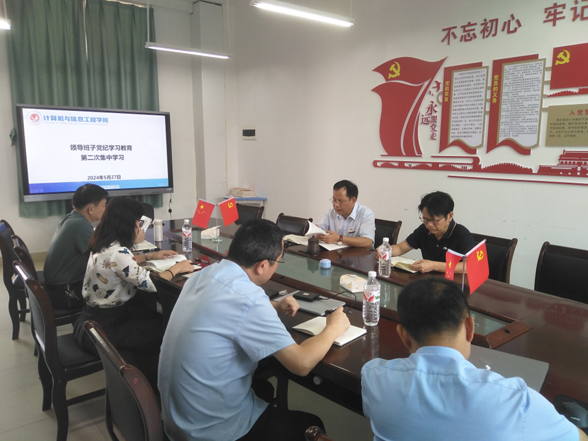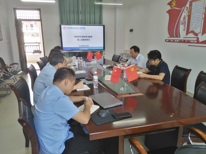 5月27日,计算机与信息工程学院党委领导班子在武鸣校区地信楼A302党员活动室,举行党纪学习教育专题读书班第二次集中学习会。学院全体班子成员参加,读书班由学院党委书记余朝文主持。