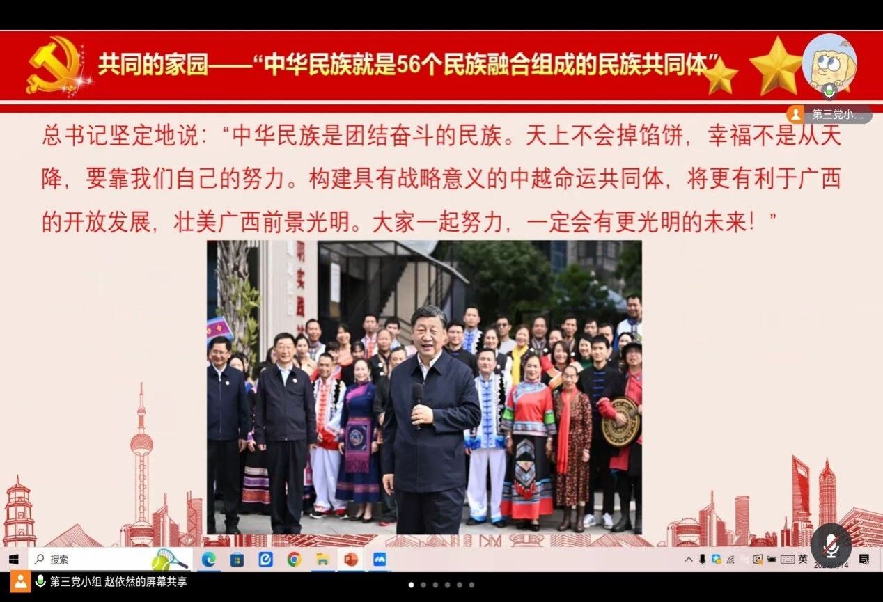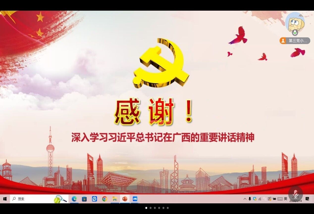 1月14日,计算机与信息工程学院计算机研究生党支部在腾讯会议开展学习《幸福的歌声 希望的田野》——习近平总书记视察广西纪实主题党日活动。