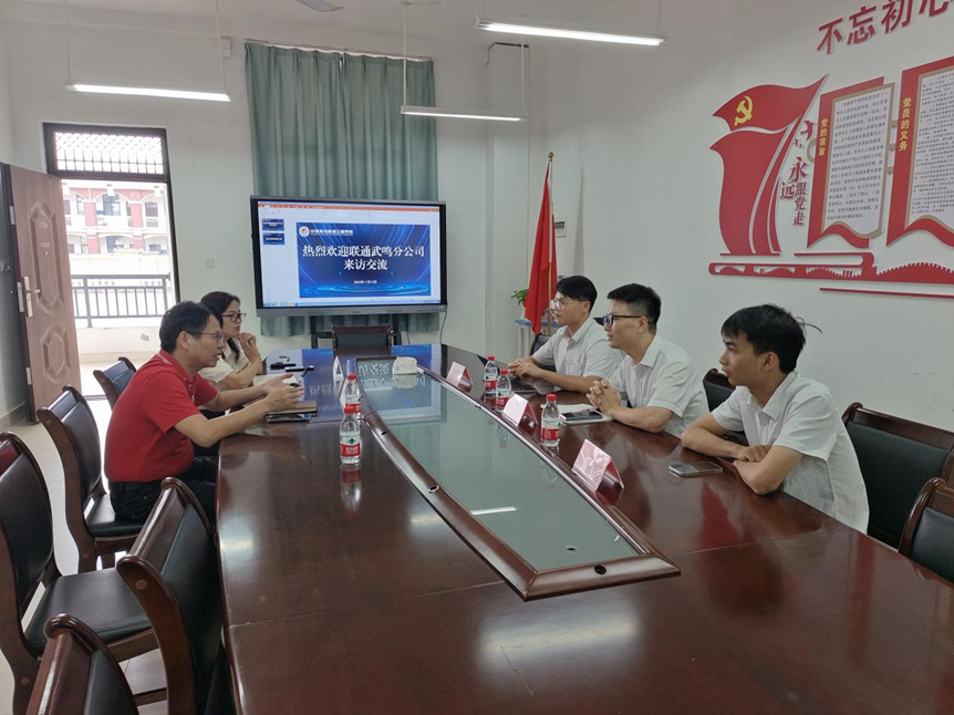 座谈会上,韦副书记代表学院对联通武鸣分公司欧阳总一行的到访表示热烈欢迎,并就学院基本情况、专业建设及毕业生资源作了简要介绍。联通武鸣分公司总经理欧阳岳辉介绍了中国联通在技术创新和业务发展方面的最新进展。他指出,随着市场扩展,信息流通推动数字经济迅猛发展,传统市场向云市场转型,企业对大数据和计算机等专业技能的人才需求增加。