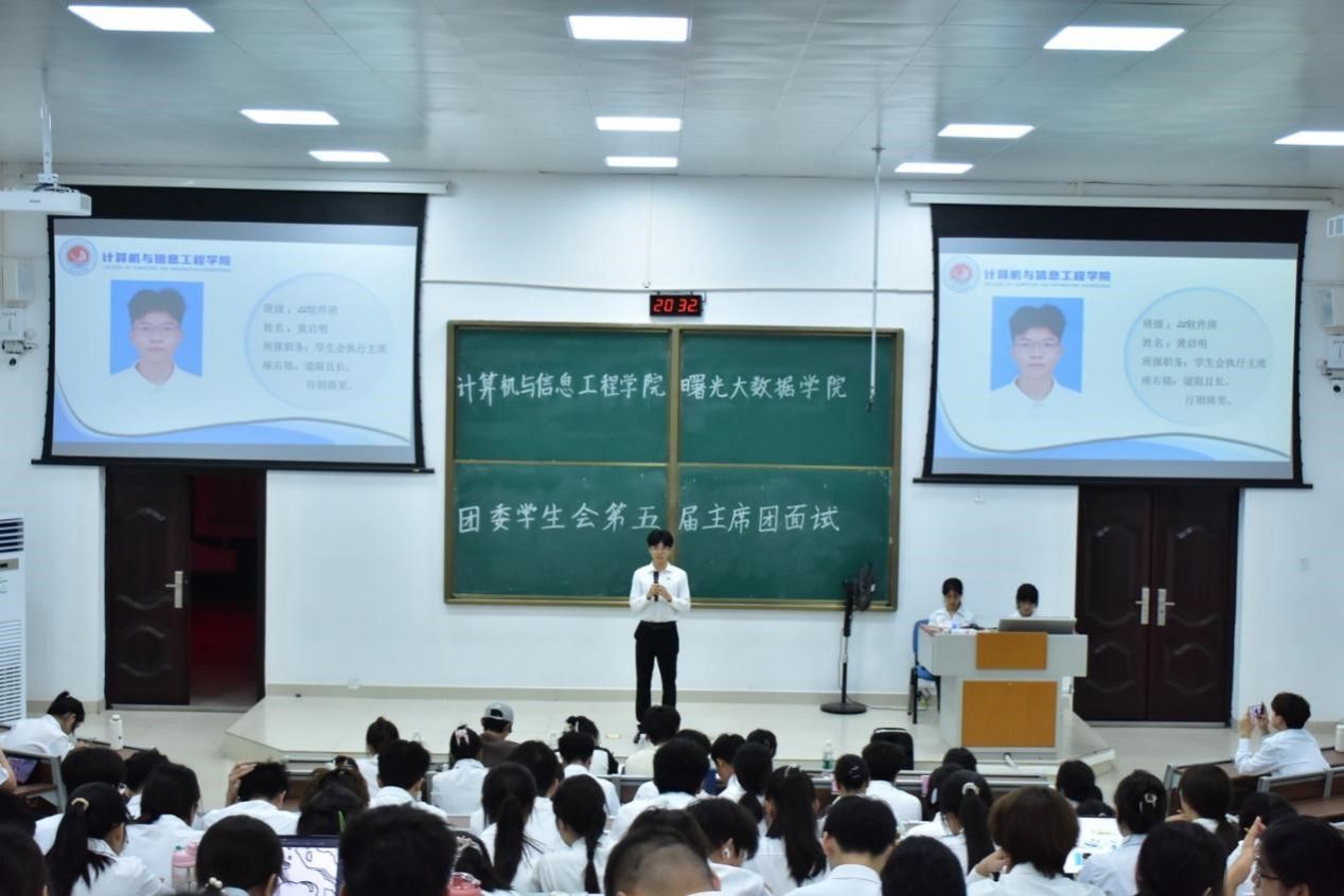 计算机与信息工程学院/曙光大数据学院于5月16日在地海楼B109开展团委学生会第五届主席团面试工作。参加本次面试的有学院辅导员宋宏斌、林雪、史朝有、许艺静以及第四届主席团和团委学生会全体成员。四位辅导员老师和第四届主席团成员担任面试官。