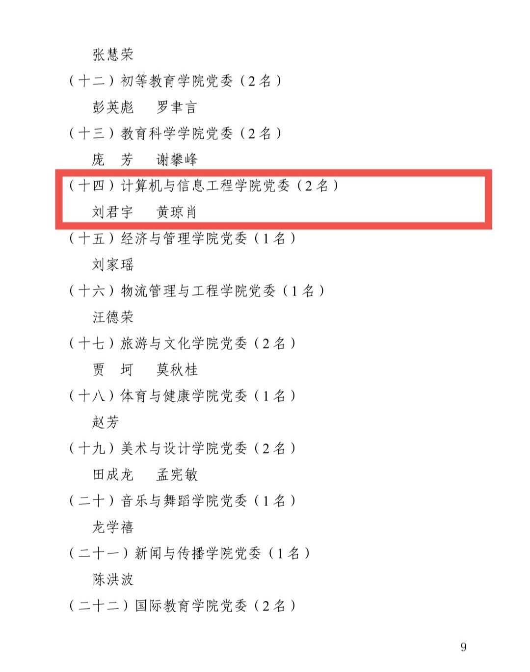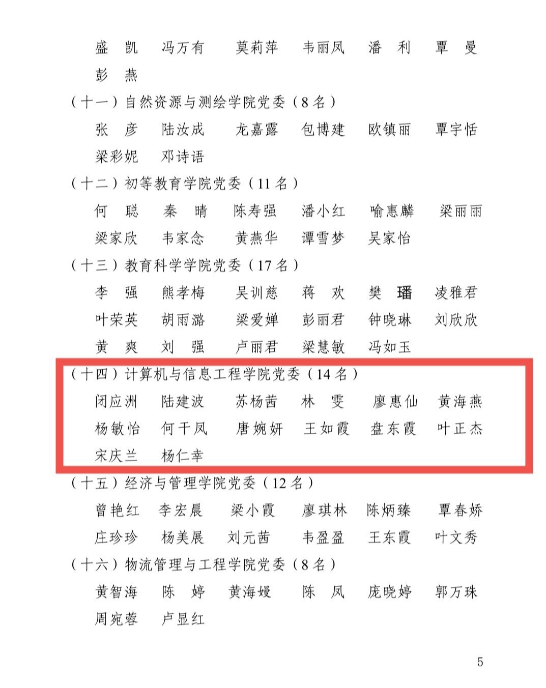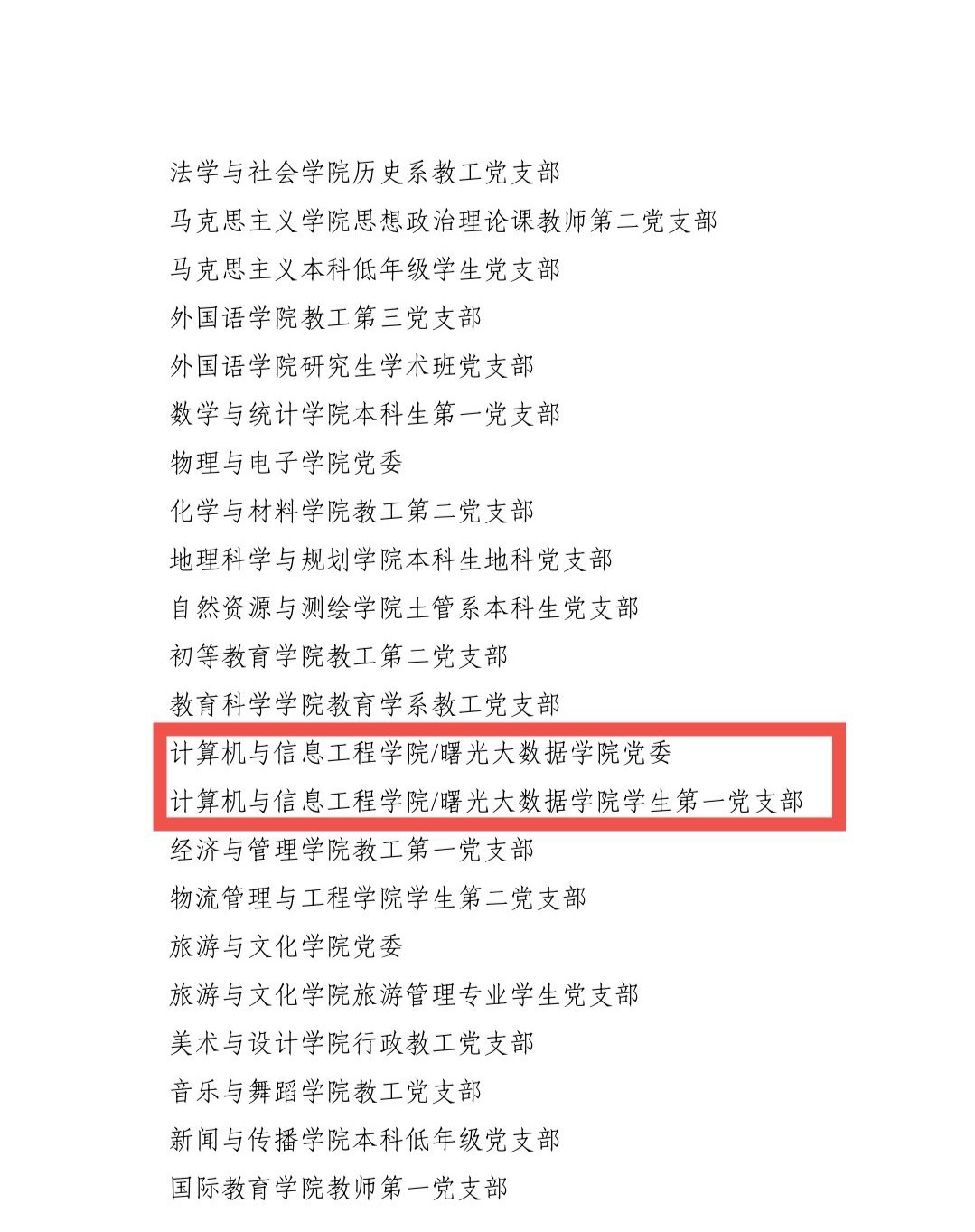 计算机与信息工程学院/曙光大数据学院闭应洲、陆建波、苏杨茜等14名同志被授予“优秀共产党员”称号,刘君宇和黄琼肖同志被授予“优秀党务工作者”称号,计算机与信息工程学院/曙光大数据学院党委、计算机与信息工程学院/曙光大数据学院学生第一党支部被授予“先进基层党组织”称号。
