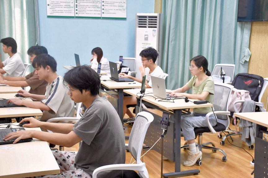 精心组织、认真备赛。学院召开竞赛宣讲会和说明会鼓励学生积极参赛,组织校赛进行队员的初步选拔;赛事指导老师苏杨茜认真制定训练计划,通过5次训练赛和专题辅导会,从竞赛真题剖析、算法优化、代码规范、到时间管理策略,全面提升队员综合能力,并经过踢馆赛最终选拔出40名学生组成4支参赛队伍参加本次竞赛。队员们积极参与模拟训练,提升编程水平与团队默契。赛场上,专注分析题目、编写代码、调试程序,逐一攻克程序设计基础、数据结构、算法分析与设计等题目,展现出扎实的编程功底与冷静沉稳的竞赛心态。