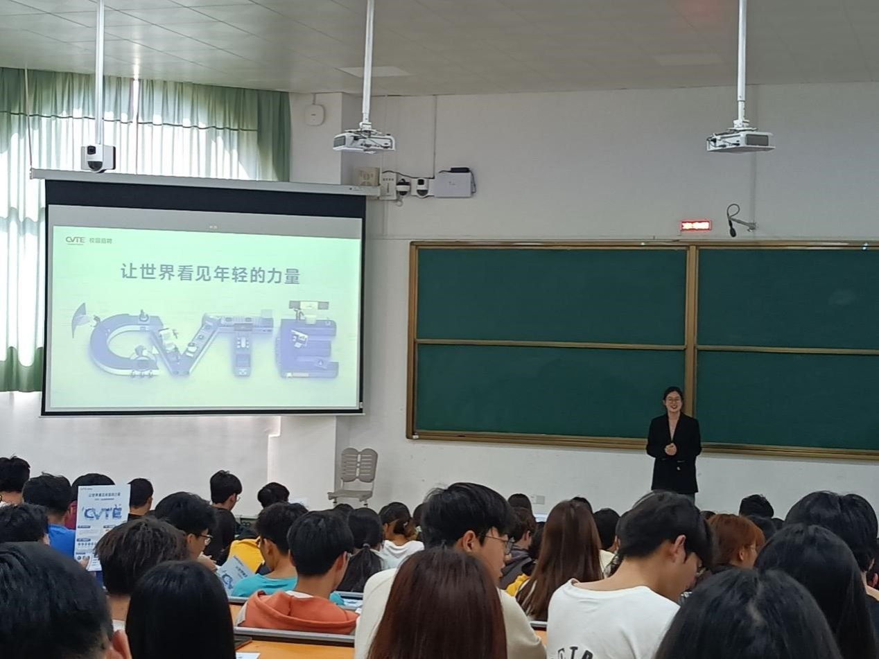 会上,全体同学先参与了CVTE广州视源电子科技股份有限公司的现场宣讲招聘会。通过宣讲会,同学们近距离了解企业,与企业宣讲负责人面对面交流,了解当前就业市场的需求和行业的发展趋势,认识到所学专业的不同岗位的职责和要求,提高同学们的职业规划意识,树立好在校期间的学习目标。此外,CVTE校招王经理鼓励大一软件工程专业的学生要根据自身兴趣、专业技能做好职业规划,明确自己未来求职目标,在竞赛和实践中不断提升自己的能力,帮助自己更好探索与之匹配的岗位。