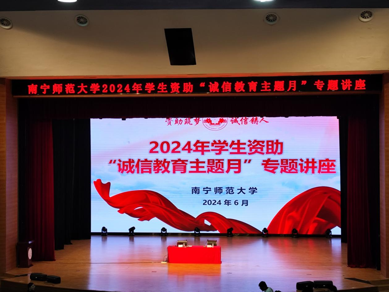 为进一步提高学生诚信意识,增强资助育人成效,促进国家助学贷款工作的顺利开展。6月24日下午,我院组织受助学生在武鸣校区音舞院报告厅参加我校举办的2024年学生资助“诚信教育主题月”专题讲座活动。我校政策法规与发展规划处邓军彪处长作为主讲、各学院相关老师及学生代表参加了本次活动。