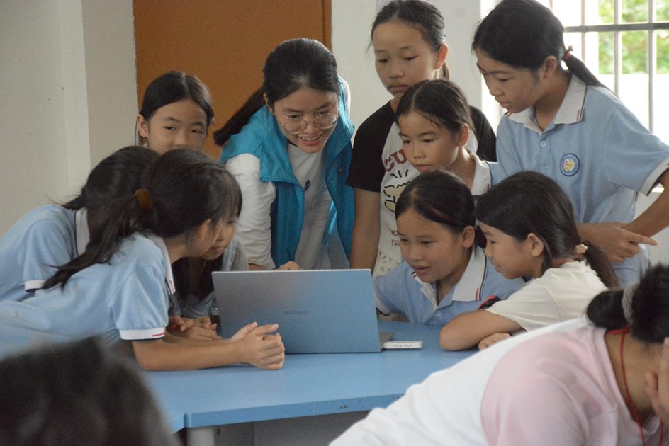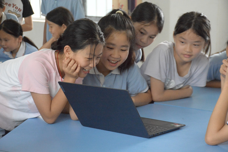 7月17日,计算机与信息工程学院/曙光大数据学院暑期“三下乡”“翔鹭”智汇民族实践团队在南宁市马山县林圩镇合理小学开展Codemao简单编程体验课。