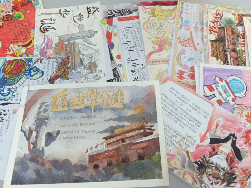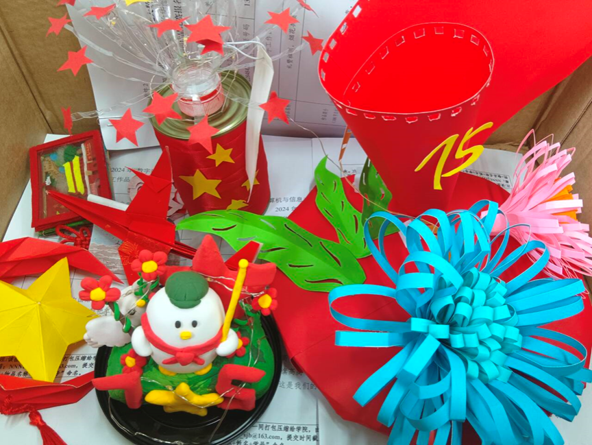 本次活动主要分为手抄报设计、手工制作和计算机编程三类,共收到计算机与信息工程学院、美术与设计学院、自然资源与测绘学院、物理与电子学院等11个学院共计120余份作品。计信学院和物电院同学们纷纷利用所学的计算机编程知识,制作前端页面、编写祝福语和使用turtle绘图等。在手工制作中,参与者们利用纸箱、粘土、塑料瓶等物品创作出富有创意和爱国元素的手工作品。同时美设学院的同学们充分展示他们扎实的绘画功底,用工整的文字、精湛的图画和创意的排版绘出一幅幅色彩鲜艳、图文并茂的手抄报,表达对祖国的热爱和祝福。