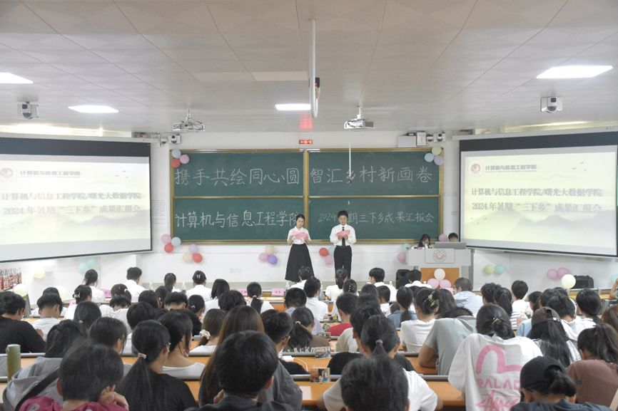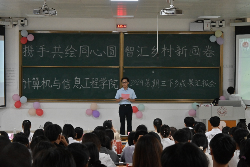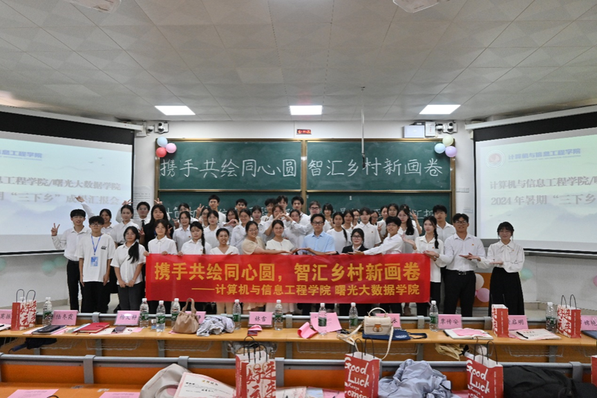 10月22日,计算机与信息工程学院/曙光大数据学院在武一115举办2024年“携手共绘同心圆,智汇乡村新画卷”暑期“三下乡”成果汇报会。参加本次活动的有学院辅导员林雪、史朝有、许艺静、黄海泳、“翔鹭”智汇民族实践团队成员、兄弟学院代表、2023级与2024级班级代表。