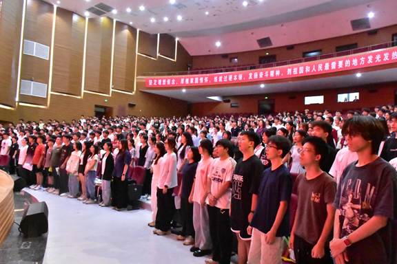 在音舞楼1号演播厅举办主题为“逐光AI时代,启航青春新篇”的2025级新生开学典礼暨入学教育。学院领导、系主任、新生班主任、全体辅导员和2025级500余名新生齐聚现场。