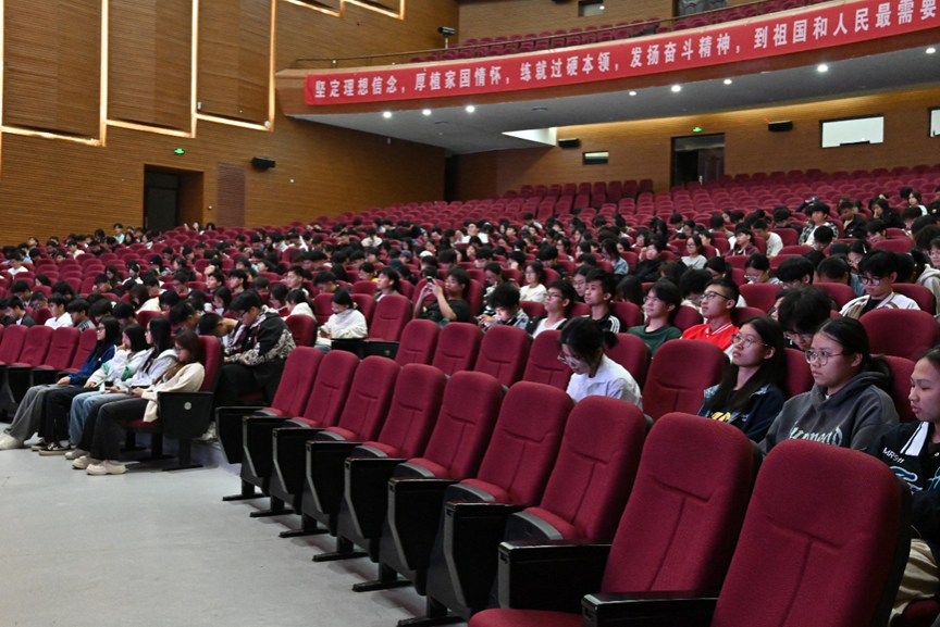 在音舞楼1号演播厅开展2025级新生心理健康教育专题讲座。本次讲座由学校心理健康教育咨询中心覃宏源老师主讲,2025级本科及研究生、2023级专升本全体新生共计400余人参加。