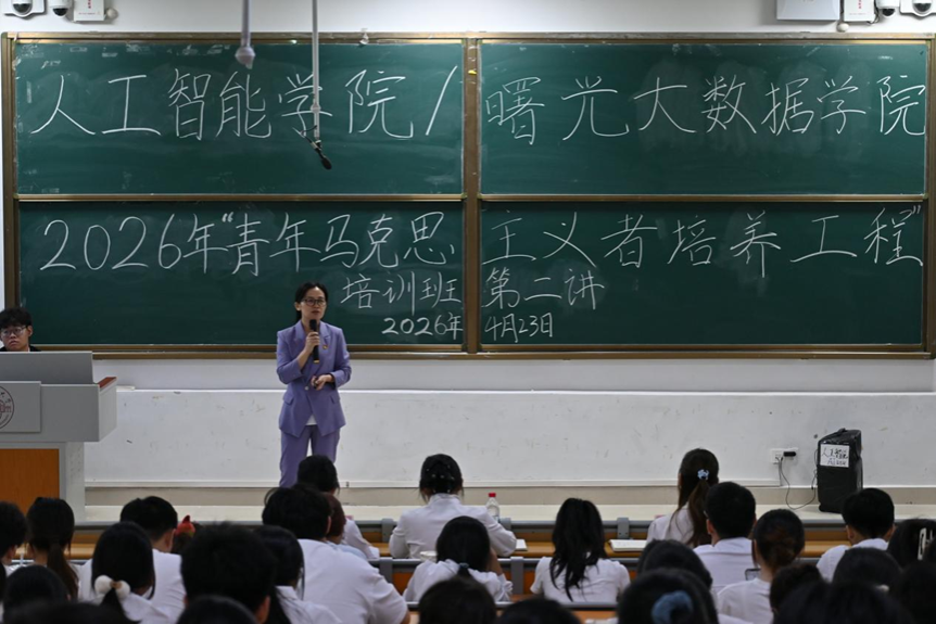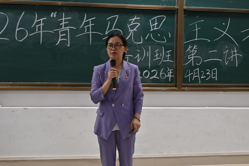 2026年“青年马克思主义者培养工程”培训班第二讲在武鸣校区一号教学楼114教室开讲。学院党委副书记韦柳温担任主讲,青马班全体学员参加。